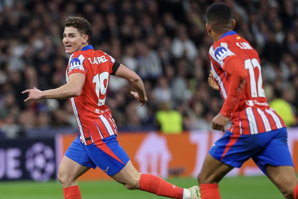 El Atlético intentaba estirarse a lo largo y ancho de todo el terreno de juego, sus bandas con Lino y Giuliano fueron el peligro más constante para la zaga madridista. El milagro vino de un balón que parecía perdido para los atléticos. Julián Álvarez consiguió hacerse con la pelota y afinó su puntería para poner el balón al palo cruzado de Courtois, anotando un golazo que serviría para igualar el encuentro en el minuto 32. Durante el resto de la primera parte, el Real Madrid tuvo mayor control de la pelota.