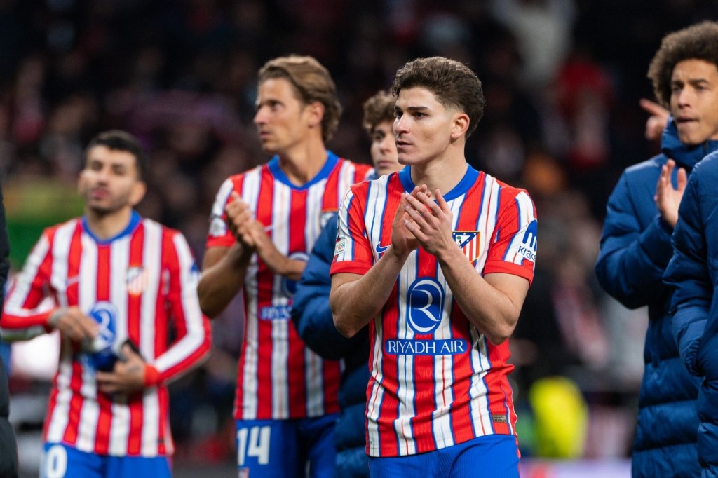 Atlético de Madrid: Oblak, Llorente, Le Normand, Lenglet, Javi Galán, Barrios, Gallagher, Lino, Giuliano, J. Álvarez, Griezmann.