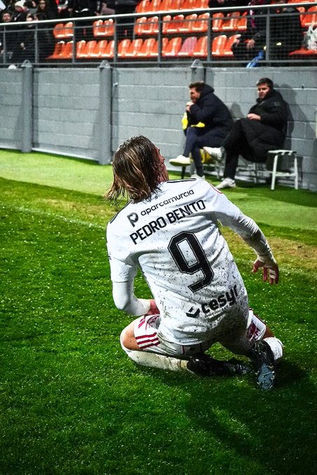 Uno de los nombres propios en la temporada del Real Murcia es Pedro Benito. Delantero centro de 24 años, procedente del Albacete de segunda división. La pasada campaña no contó con muchos minutos en el conjunto blanquinegro debido a una grave lesión que lo mantuvo fuera de los terrenos de juego durante 4 meses. Además, la falta de oportunidades y la poca confianza del entrenador llevaron a Pedro a salir del equipo.