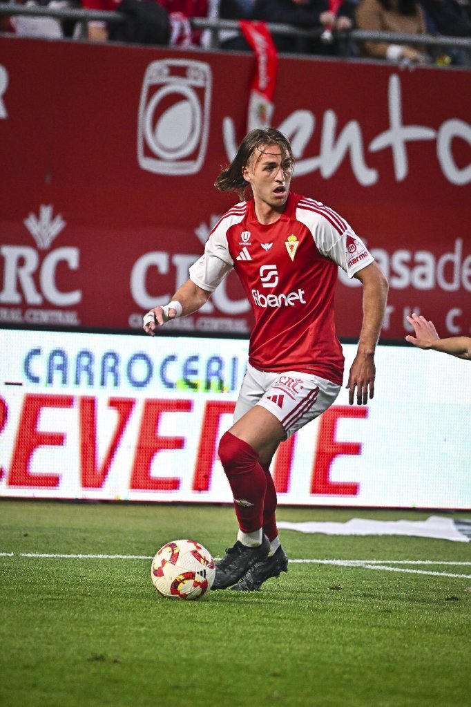 Un Real Murcia bien posicionado buscaba la amplitud por las bandas con Pedro León y Pedro Benito muy metidos en el partido. Se respiraba ambiente de partidazo y cada saque de banda se celebraba como un tanto en el minuto 89’. Las llegadas constantes junto a la afición volcada, hacían del Enrique Roca un hervidero.