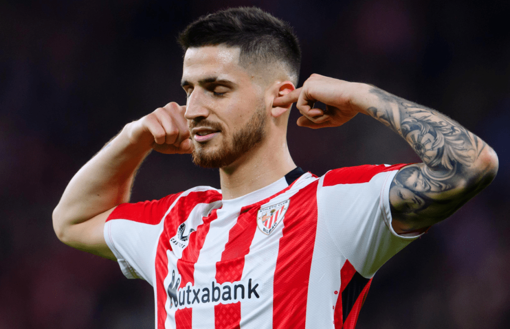 Ohian Sancet celebra uno de sus goles con los dedos en los oídos/ X @AthleticClub