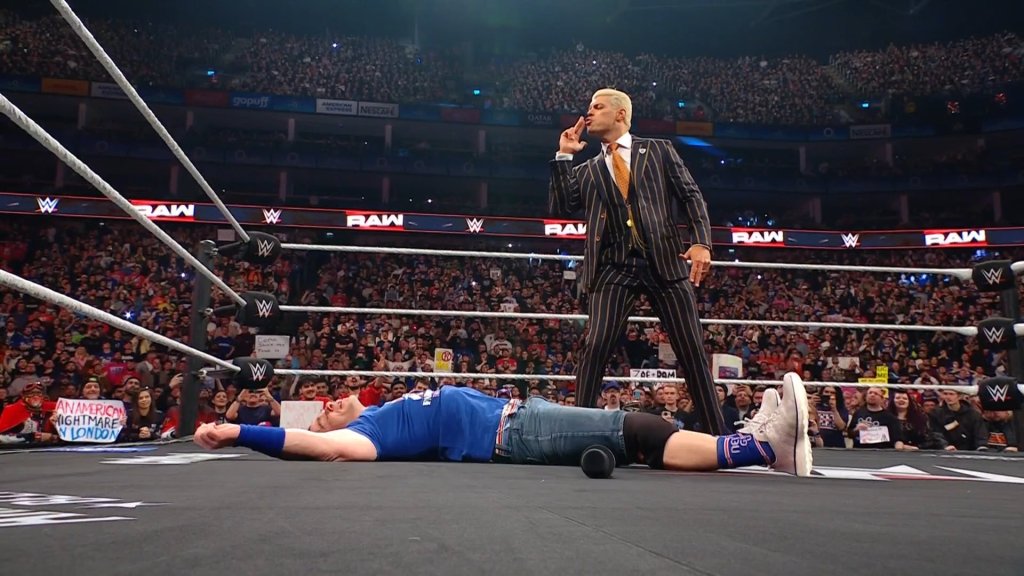 La interacción entre ambos acabo en el 02 en Londres, cuando Cena intento atacar a Cody, pero este lo reverso dejándolo tendido en el medio del ring.