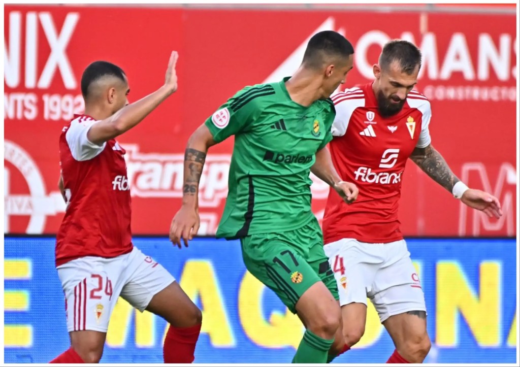 El equipo de Fran Fernández salió con fuerza, empujado por una afición espectacular que llenó el estadio y creyó hasta el final. Hubo presión, saques de esquina en cadena y un par de llegadas con cierto peligro. El Murcia dominaba, sí, pero sin filo. Lo de siempre: mucho balón, poca pólvora.