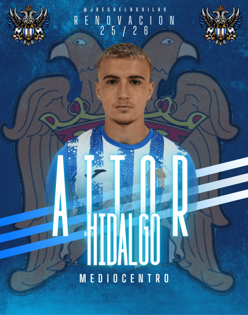 El Águilas FC ha confirmado la renovación de Aitor Hidalgo, un jugador clave que volverá a ocupar una ficha sub23 de cara a la próxima temporada. A sus 22 años, el mediocentro reúne las condiciones necesarias para asumir ese rol con total garantía: potencial, capacidad y compromiso.