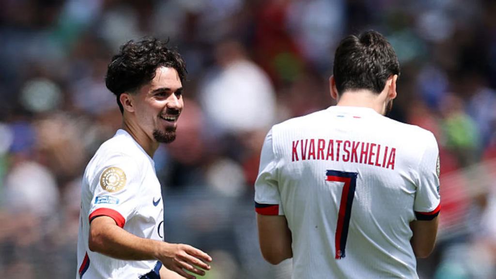 El georgiano estuvo muy activo en el primer tiempo y fue protagonista en el primer gol, desviando involuntariamente el disparo de Vitinha. Volvió a ser de los más desequilibrantes, asociándose bien con Mendes. Fue sustituido en el minuto 62 por Bradley Barcola, quien asistió en el segundo tanto.