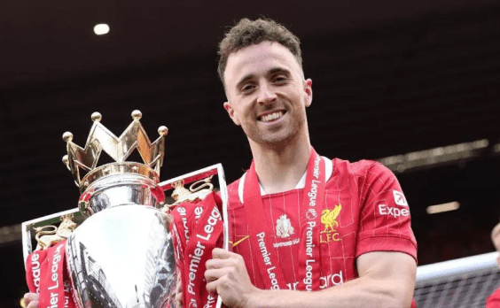 Diogo Jota posa con la Premier conseguida con el Liverpool esta temporada/ El Español