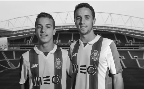 André Silva y Diogo Jota posan con la camiseta del Oporto, equipo de su ciudad/ El Desmarque