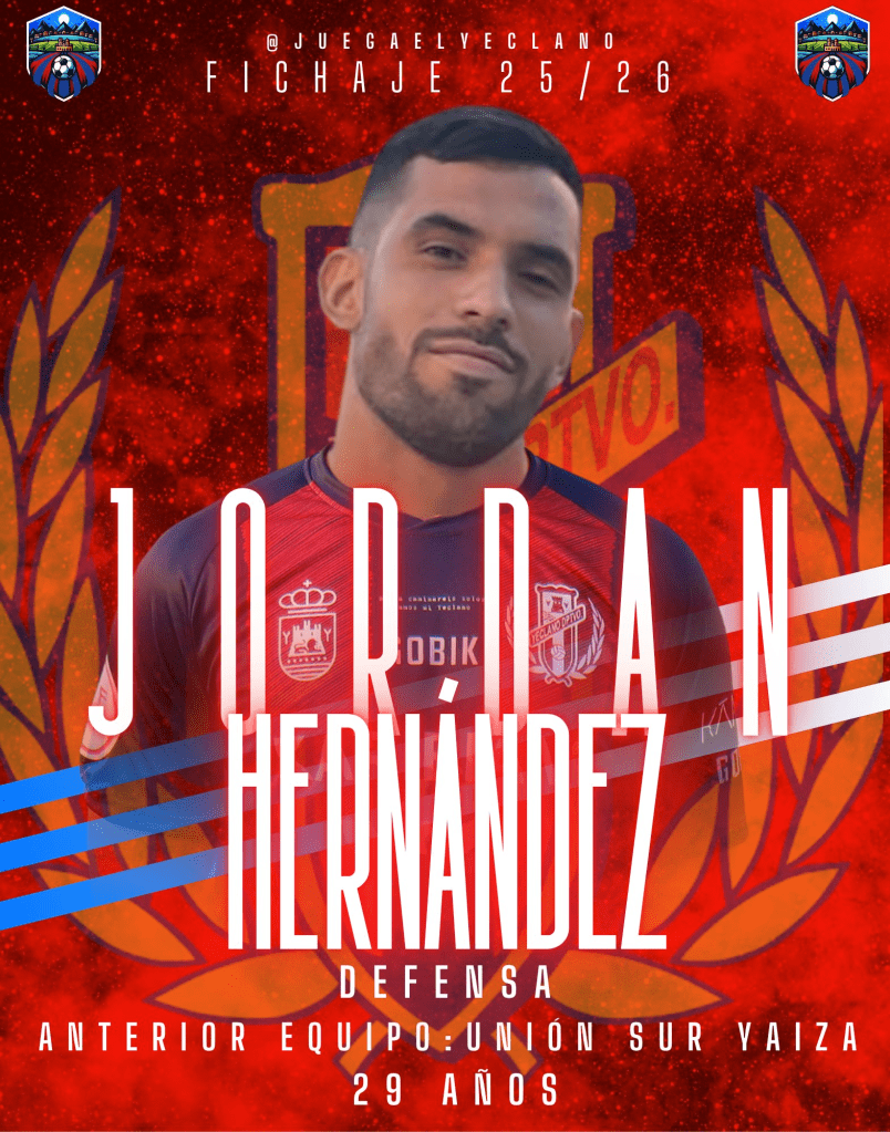 También se incorporó Jordan Hernández, central canario de 29 años con más de 6.500 minutos y 93 partidos en 2ª RFEF. Formado en el Tamaraceite, militó en la Unión Sur Yaiza antes de aterrizar en Yecla.