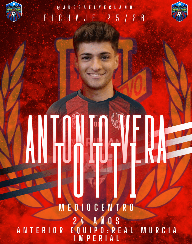 Conocido en su etapa de formación como una de las joyas del Real Murcia, Totti también pasó por las canteras de Zaragoza y Getafe. A sus 23 años, brilló en el Imperial y llegó a debutar en Primera RFEF durante la 23/24. Puede jugar tanto de mediocentro como de mediapunta..