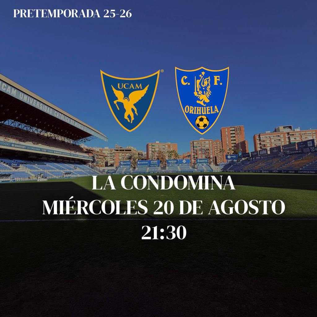 ● 20 de agosto – Orihuela CF vs UCAM Murcia CF Cierre de pretemporada ante un rival de superior categoría. El UCAM exigirá al máximo al Orihuela en lo físico y lo técnico.