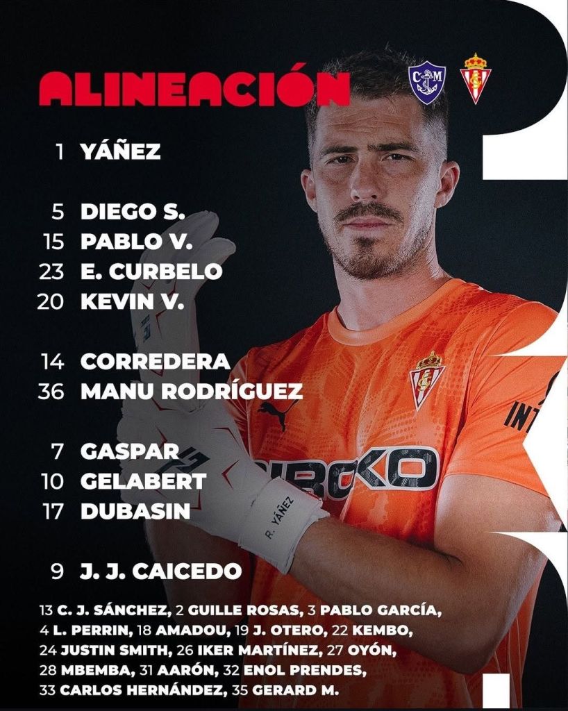Este once duró 45 minutos donde anotó dos goles Jordy Caicedo, uno de cabeza como un killer nato y el otro de un pase solo contra la portería de Jonathan Dubasin, y el otro gol fue de Gaspar, cruzada al primer palo donde nada pudo hacer el portero del Marino de Luanco.