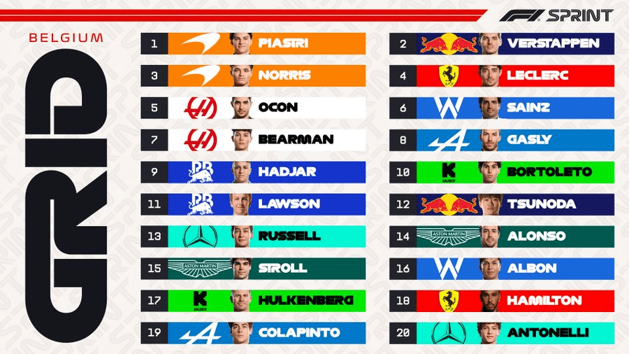 Piastri, que luego mencionó por radio el susto que vivió en la SQ2, brilló y tras una vuelta magnífica, récord de vuelta clasificatoria en la historia del circuito, logró la minipole. El podio de clasificación lo completaron Verstappen y Norris, quedando Leclerc cuarto. Lando ve cómo su compañero le puede arrebatar varios puntos en la Sprint de mañana y no podría sacarle el máximo jugo a sus dos victorias consecutivas.