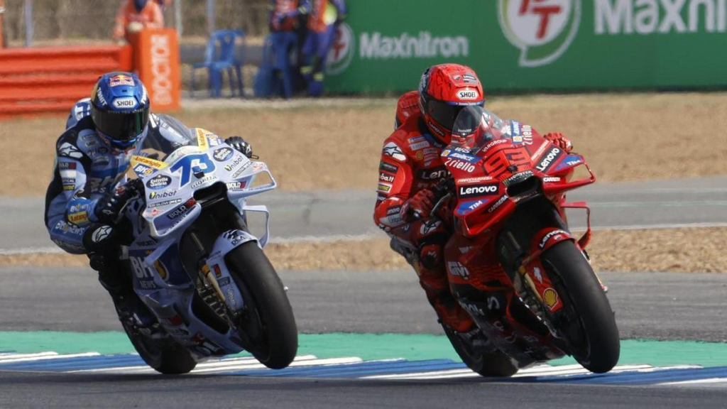 El de Gresini, quien recordemos que viene recuperándose de su lesión en la mano producida en Assen tras el incidente con Pedro Acosta, afirmó que para competir de frente a su hermano mayor, además de velocidad es muy importante no cometer errores, y él, siendo el segundo clasificado en la general, ni tan solo fue capaz de puntuar en el gran premio pasado. Esto le ha llevado a tirar la toalla y da por hecho imposible acortarle distancias al «tro de Cervera» como para competirle el título mundial.