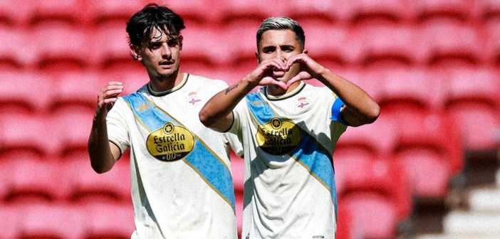 Patiño y Yeremay en la celebración del primer gol del Dépor | Riazor.org