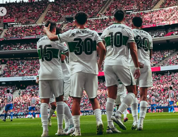 Los jugadores del Elche celebran el gol del empate en el Metropolitano/ Instagram: @elchecf