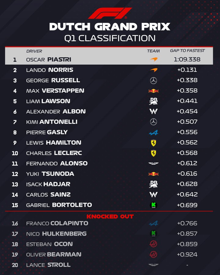 Clasificación final de la Q1: Fuente: @F1 en X