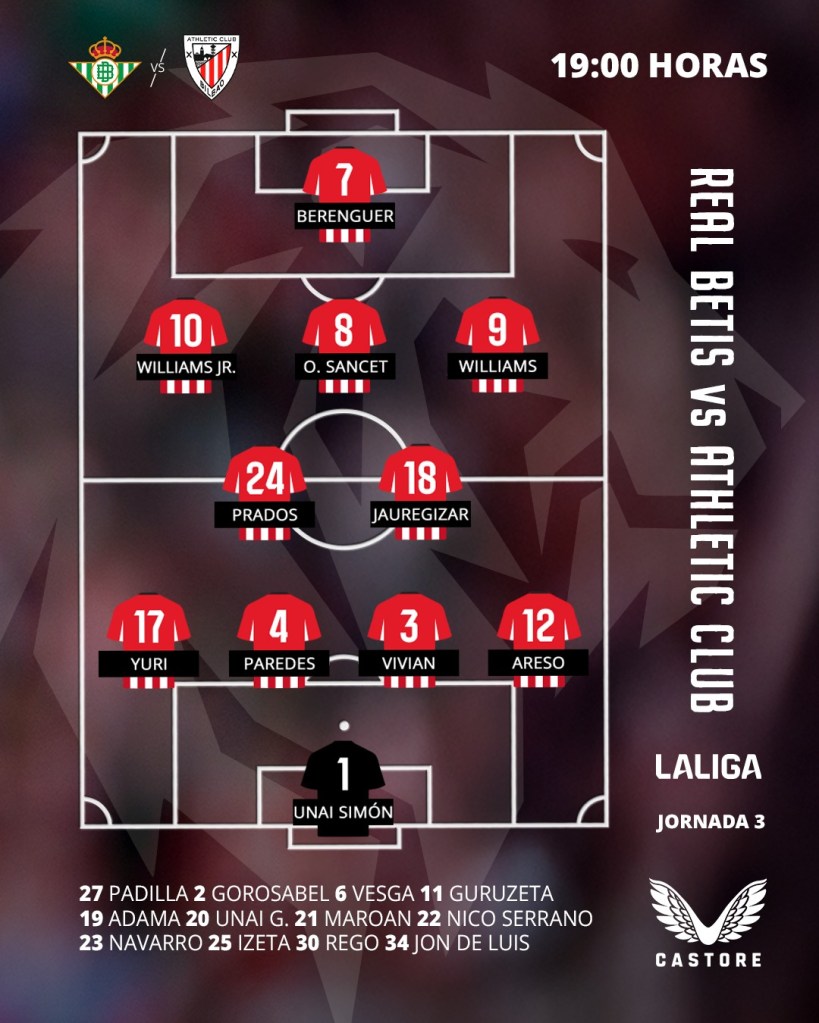 El Athletic ponía en liza un once similar al que adelantamos en la previa con la entrada de Berenguer en el lugar de Sannadi.