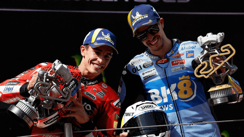 No obstante, en la carrera larga de domingo, el piloto de Gresini se negó a cometer ese mismo error por segunda vez, anuló cualquier tipo de posibilidad de victoria por parte de su queridísimo hermano, y cosechó la que es hasta la fecha su segunda victoria en la categoría reina del motociclismo, demostrando así, que está donde está gracias a su talento, trabajo y sacrificio, y no por ser hermano de un ocho veces campeón mundial.