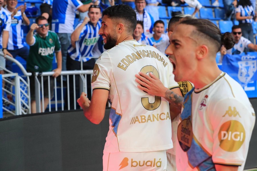 Eddahchuri y Mario Soriano en la celebración de un gol| Laopinioncoruna.es/Laura Santos/RCD