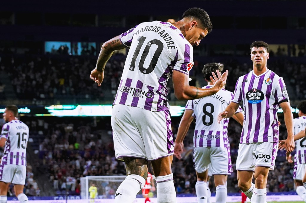 Otra vez más que el Almería no concretó sus ocasiones y lo pagó caro. Cuando no habían pasado ni diez minutos desde el penalti, Marcos André, con un remate atípico de cabeza puso por delante al Valladolid, dando un duro golpe de realidad al rival.