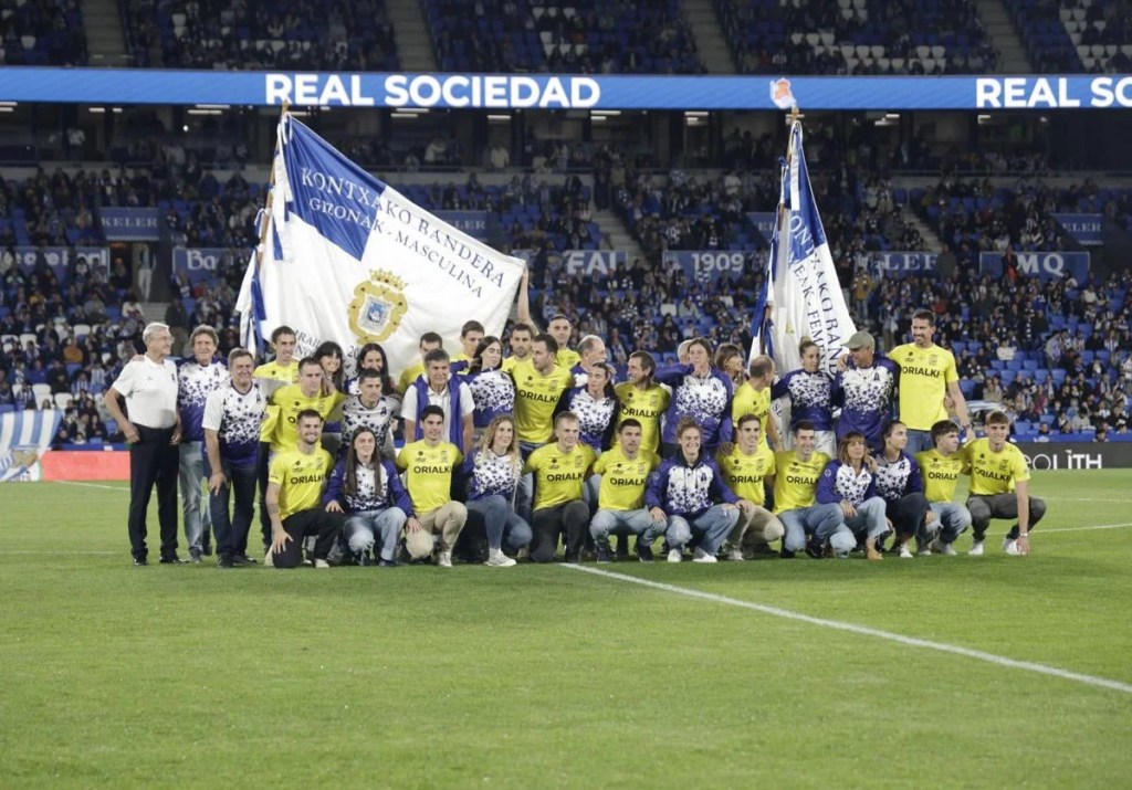 Antes del encuentro se realizo un homenaje a las dos embarcaciones que recientemente ganaron la regata de la Concha. A la tripulación femenina de Arraun Lagunak y a la tripulación masculina de Orio.
