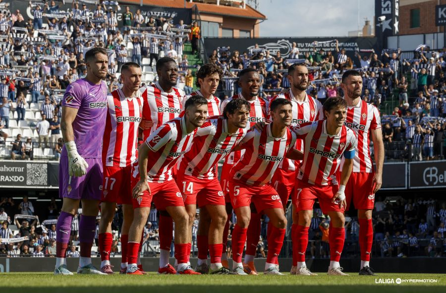 Sporting de Gijón (4-2-3-1): Rubén Yáñez; Guille Rosas, Pablo García, Diego Sánchez, Smith; Amadou, Nacho Martín; Corredera, Cortés, Gaspar Campos; Juan Otero. Entrenador: Borja Jiménez.