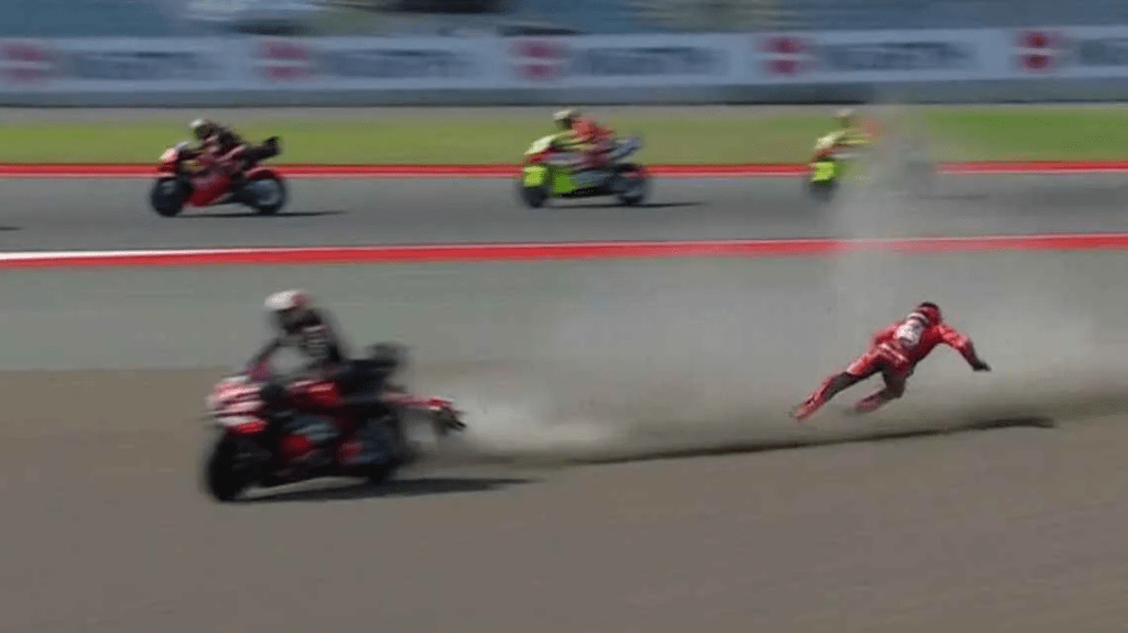 Hace poco más de una semana, el piloto del Ducati Lenovo Team volvió a dar el susto, cuando nada más arrancar la carrera del domingo, un Marco Bezzecchi que durante todo el fin de semana rodó con un ritmo de ensueño e inició el gran premio como un auténtico cohete, desafortunadamente se llevó puesto al recién coronado campeón mundial, provocando así, la caída del mismo. Al llegar a la grava, Marc salió revotado contundentemente, fracturándose así, la clavícula derecha.