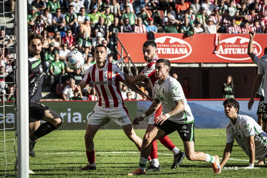 El central sportinguista cumplió con nota en la faceta defensiva y ayudó en ataque con un gol muy importante que dio la victoria a su equipo. En la imagen el tanto del triunfo del zaguero sportinguista.