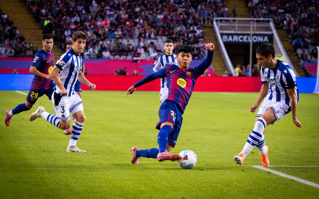 Antes de su estelar aparición en la Champions, Dro Fernández ya había tocado el escalón dorado del fútbol español: el 28 de septiembre de 2025, con tan solo 17 años, debutó oficialmente en La Liga como titular frente a la Real Sociedad en el Estadi Olímpic Lluís Companys, en un partido que terminó 2-1 a favor del Barça. Fue titular en la primera mitad del encuentro, luego fue sustituido al descanso, y con ese paso comenzó su trayectoria en competiciones oficiales con el primer equipo.
