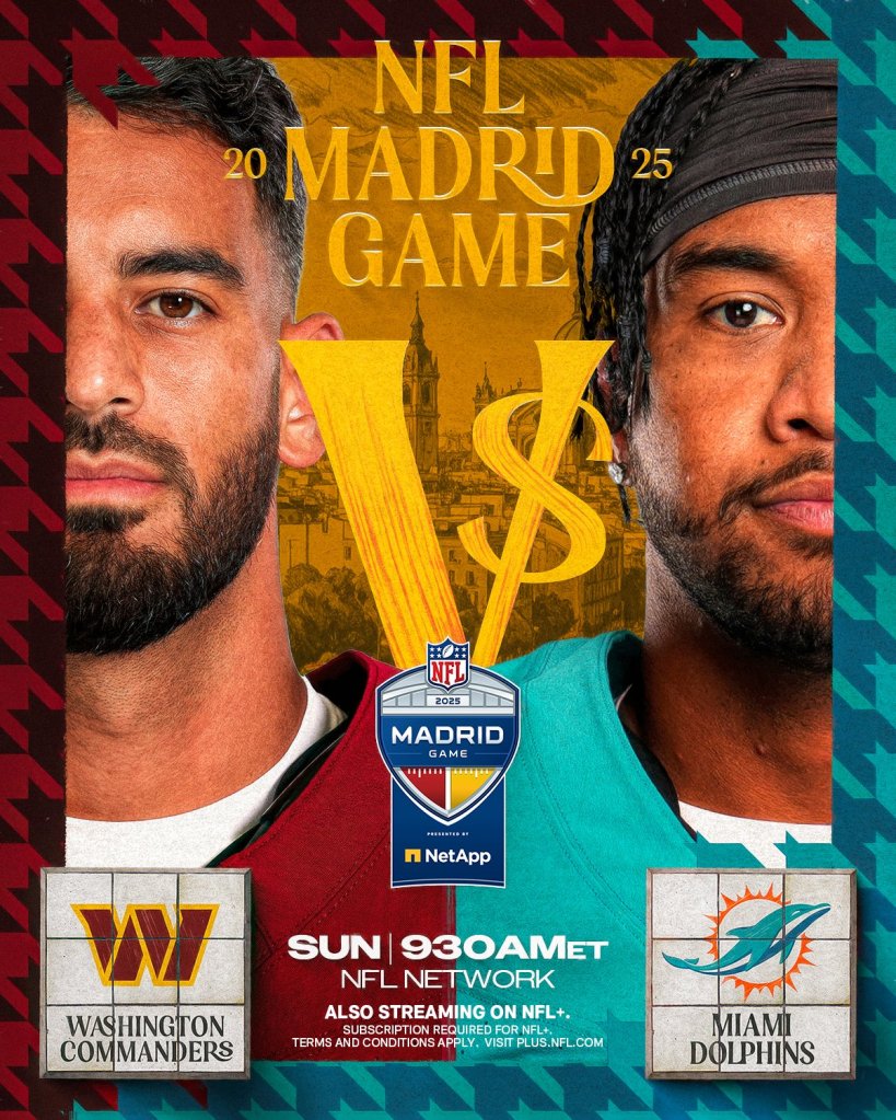 La NFL ha llegado a España, desde el estadio Santiago Bernabéu de Madrid el público español podrá disfrutar de un acontecimiento histórico, en el encuentro que disputarán los Miami Dolphins y los Washington Commanders, el encuentro se disputará a las 15.30.