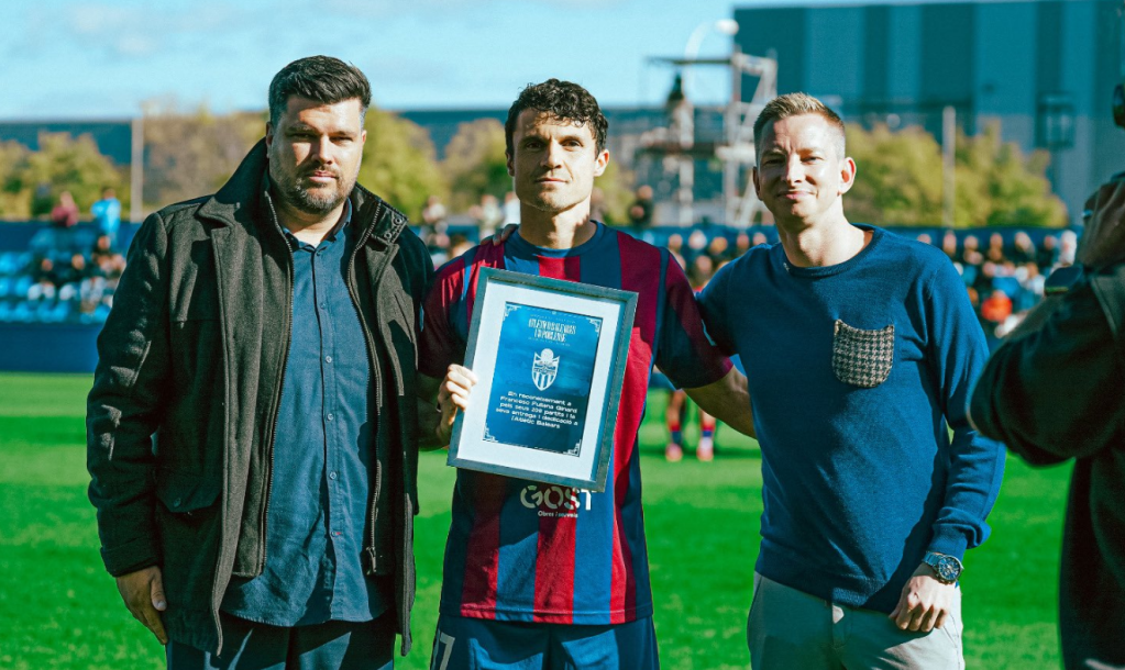 Previamente al inicio del choque, se haría entrega de una placa conmemorativa a una leyenda del club local como es Francesc Fullana, con más de 200 partidos con la camiseta blanquiazul.