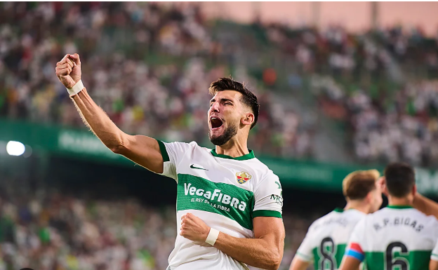 Rafa Mir celebra un gol con el Elche en el Martínez Valero/ Las Provincias