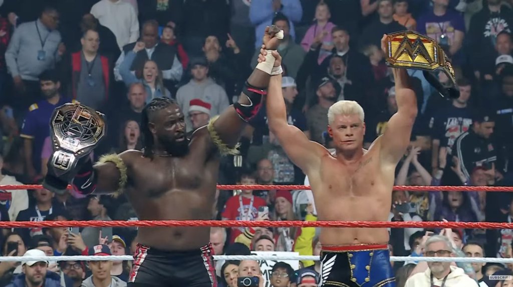 El combate tampoco duro mucho más de aquí en adelante, ya que una vez regresados al ring Drew McIntyre hizo una aparición para atacar a Rhodes, con quien mantiene una dura rivalidad. Oba Femi acabaría salvando al campeón y ambos luchadores acabarían celebrando el futuro de la industria.