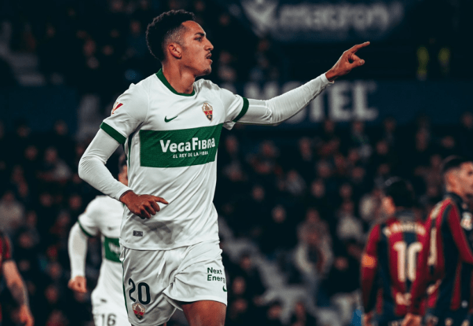 Álvaro Rodríguez celebra su gol al Levante/ X @ElcheCF