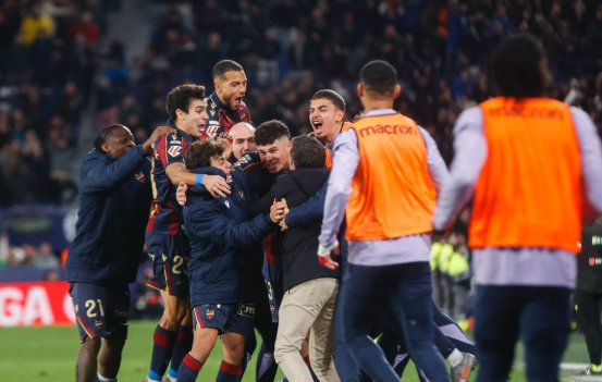 Los jugadores del Levante celebran el gol de la victoria/ Levante EMV