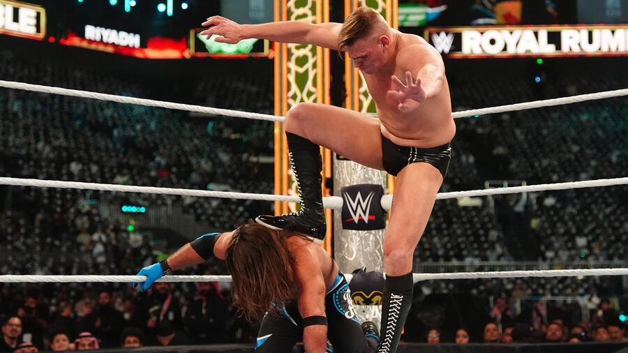 El Royal Rumble masculino estuvo plagado de momentos espectaculares y otros momentos cómicos. El primer momento que dejo a los fanáticos con la boca abierta fue antes de comenzar el combate, después de la entrada de Oba Femi en el número 1, le siguió Bron Breakker, el cual fue duramente atacado por un enmascarado, algo que le acabo costando la eliminación.
