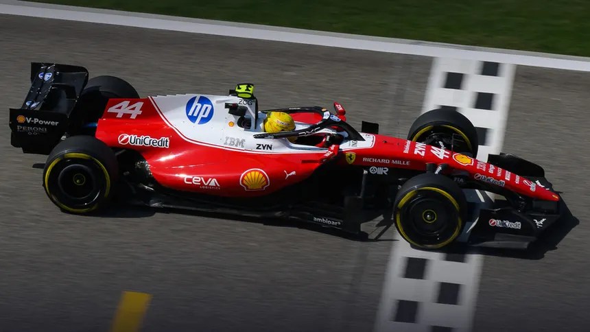 Lewis Hamilton subido en su Ferrari esta tarde