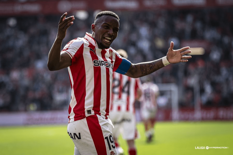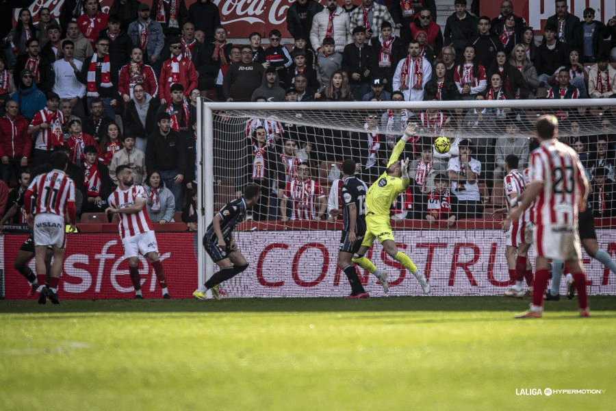 El encuentro arrancaba con los locales dominando desde los primeros compases, donde dio sus frutos ya que en el minuto 7, tras un centro que disputa Gelabert, le cae a Juan Otero donde hace una espectacular acrobacia de chilena para marcar uno de los mejores goles de la temporada, una chilena perfectamente ejecutada para poner patas arriba al Molinón y adelantar a los rojiblancos bien pronto en el marcador.