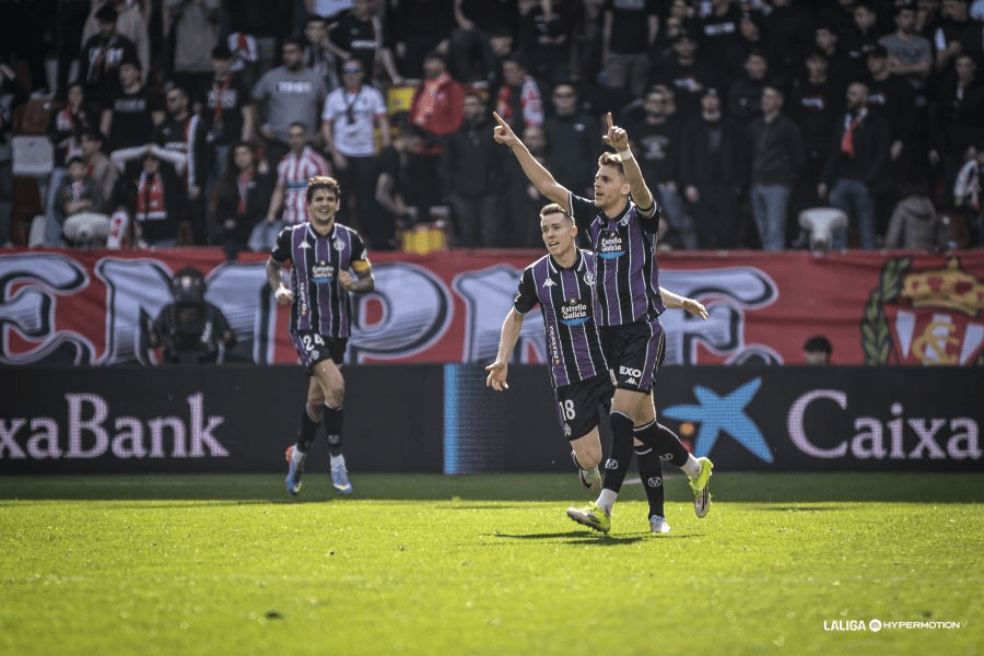 Tras el gol, la tablilla marcaría 3 minutos de añadido donde el Real Valladolid, tras una pérdida de posesión del Sporting en transición, recuperaban los pucelanos y tras una jugada en dos toques, le caía a Sergi Canós que cruzaría bien el balón al palo derecho de la portería de Rubén Yáñez donde nada pudo hacer para evitar el primer gol del extremo del Real Valladolid está temporada. Así llegariamos al descanso con 1-2 en el marcador favorable a los pucelanos.