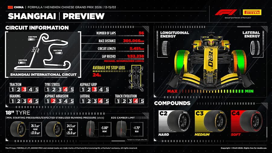 Información ofrecida por Pirelli sobre el circuito de Shanghái