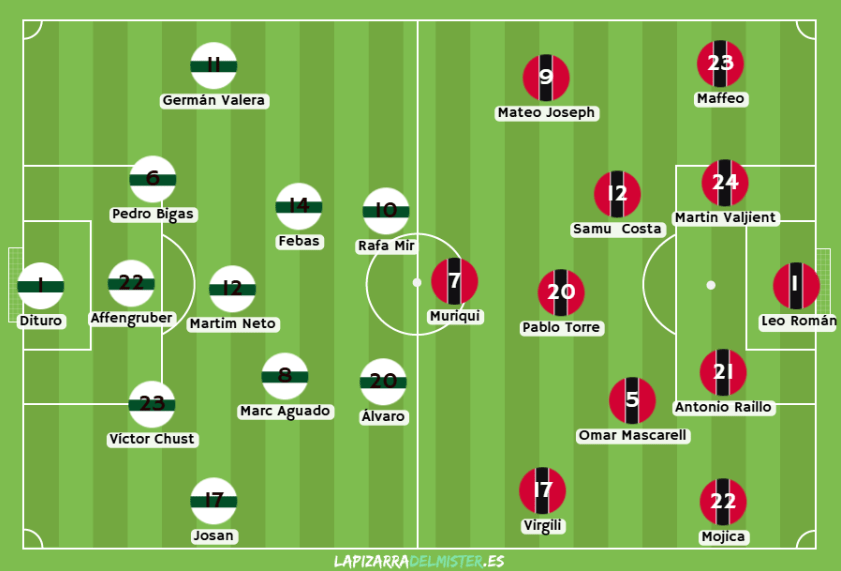 Los de Eder Sarabia afrontan su primera final por el descenso, en posición de peligro y con la cabeza del técnico vasco cerca de la guillotina. El Mallorca de Martín Demichelis viene con la confianza por las nubes y busca dar un golpe a un rival directo.