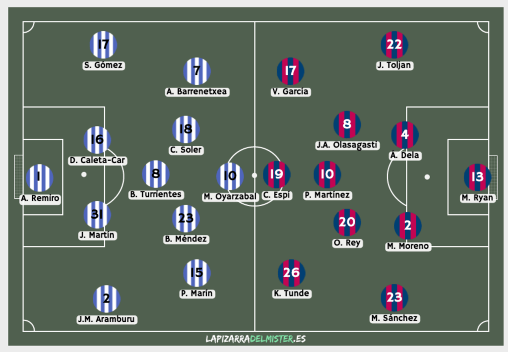 La Real Sociedad recibe al Levante UD en el estadio de Anoeta de San Sebastian en la jornada 30 de La Liga EA Sports, en un encuentro que se disputara a las 14.00 horario peninsular del sábado 4 de abril.
