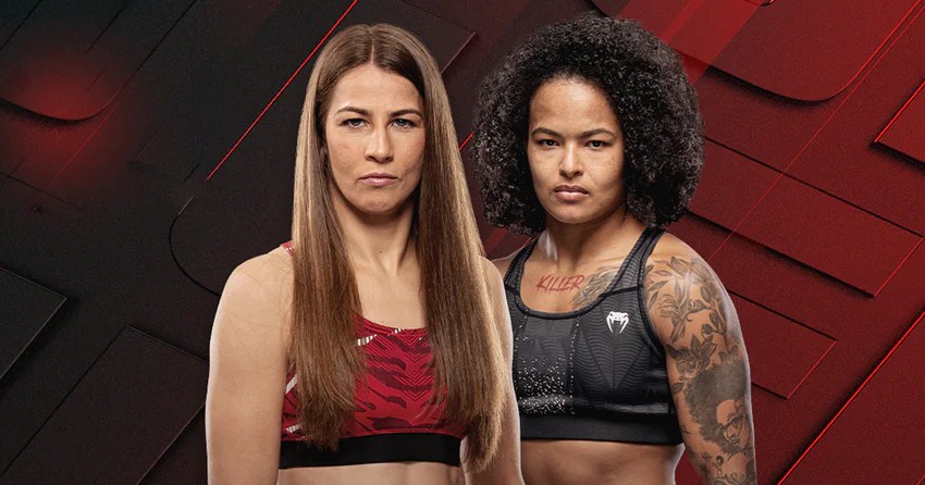 A estas alturas de la noche tendremos el combate femenino de esta Main Card. Por un lado la canadiense Jasmine Jasudavicius que acaba de cortar su racha de victorias tras perder contra Fiorot. De haber ganado aquel combate se hubiese colocado como una de las favoritas al Peso Mosca femenino. Algo similar a lo que le ha pasado a su rival, Karine Silva, que tras la derrota con Barber ha dado un paso atrás en su carrera por el título.